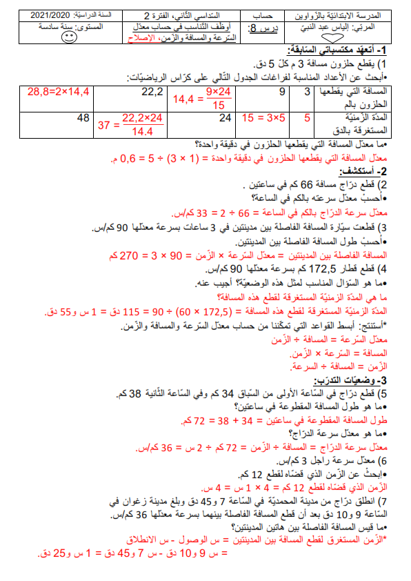 الصفحة الرئيسية +السنة السادسة درس أوظّف التّناسب في حساب السّرعة و المسافة والزّمن درس أوظّف التّناسب في حساب السّرعة و المسافة والزّمن الكاتب الكـــــــــــــاتب الجمعة 10 أبريل 2026 0 السنة السادسة ابتدائي - السداسي الثانيشكر خاص للمربي إلياس عبد النبيّ التصنيفات: +السنة السادسة فيسبوك تويتر واتساب أحدث أقدم